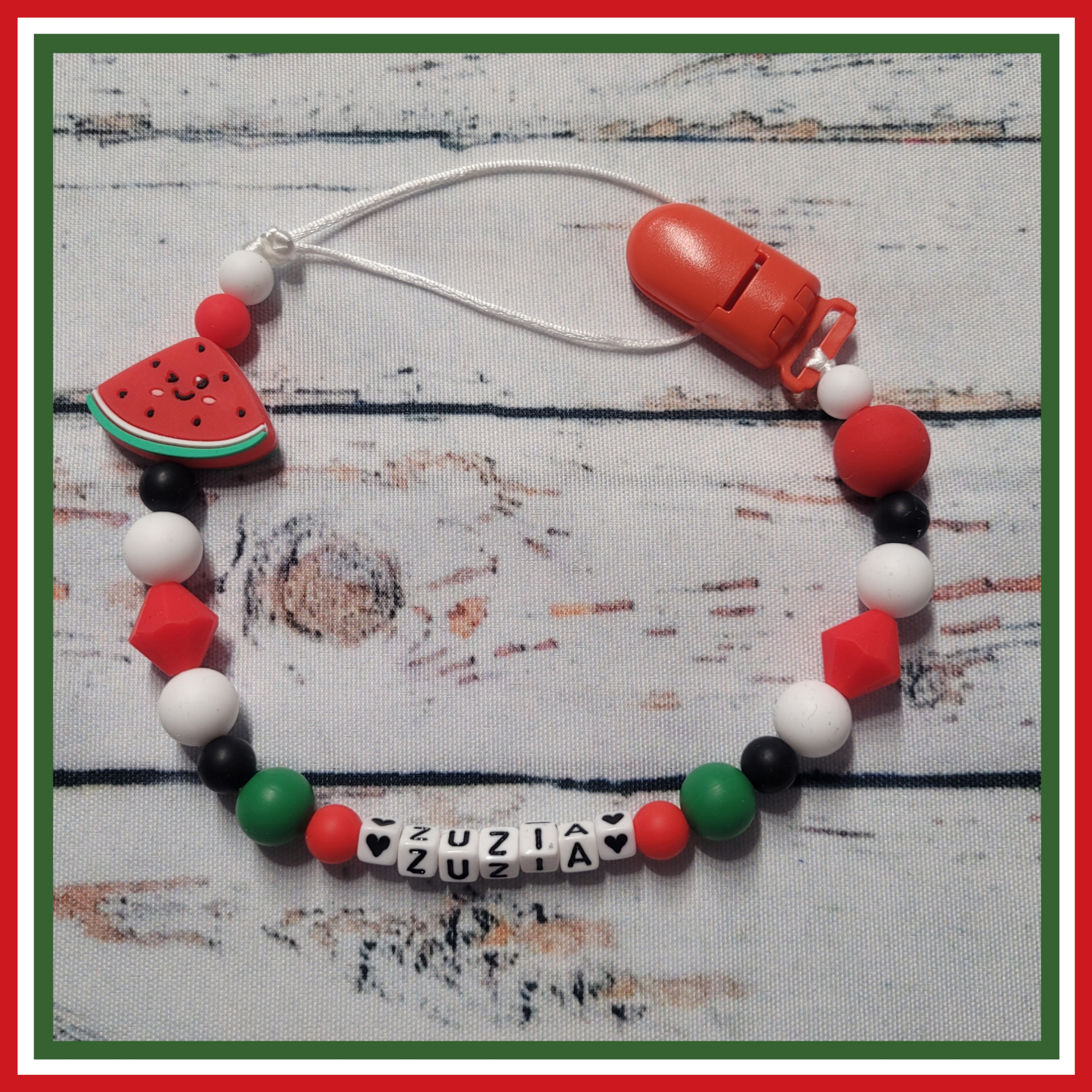 Z obu stron zawieszka jest tak zabezpieczona, aby koraliki nie miały możliwości na zsunięcie się, co sprawia, że zawieszka jest bezpieczna dla dziecka. Zawieszki  wykonane są z najwyższej jakości materiałów, które posiadają wszystkie niezbędne atesty, wykonane są z bardzo wytrzymałych tworzyw, nie zawierają toksycznych substancji typu BPA, PVC, latex itp...