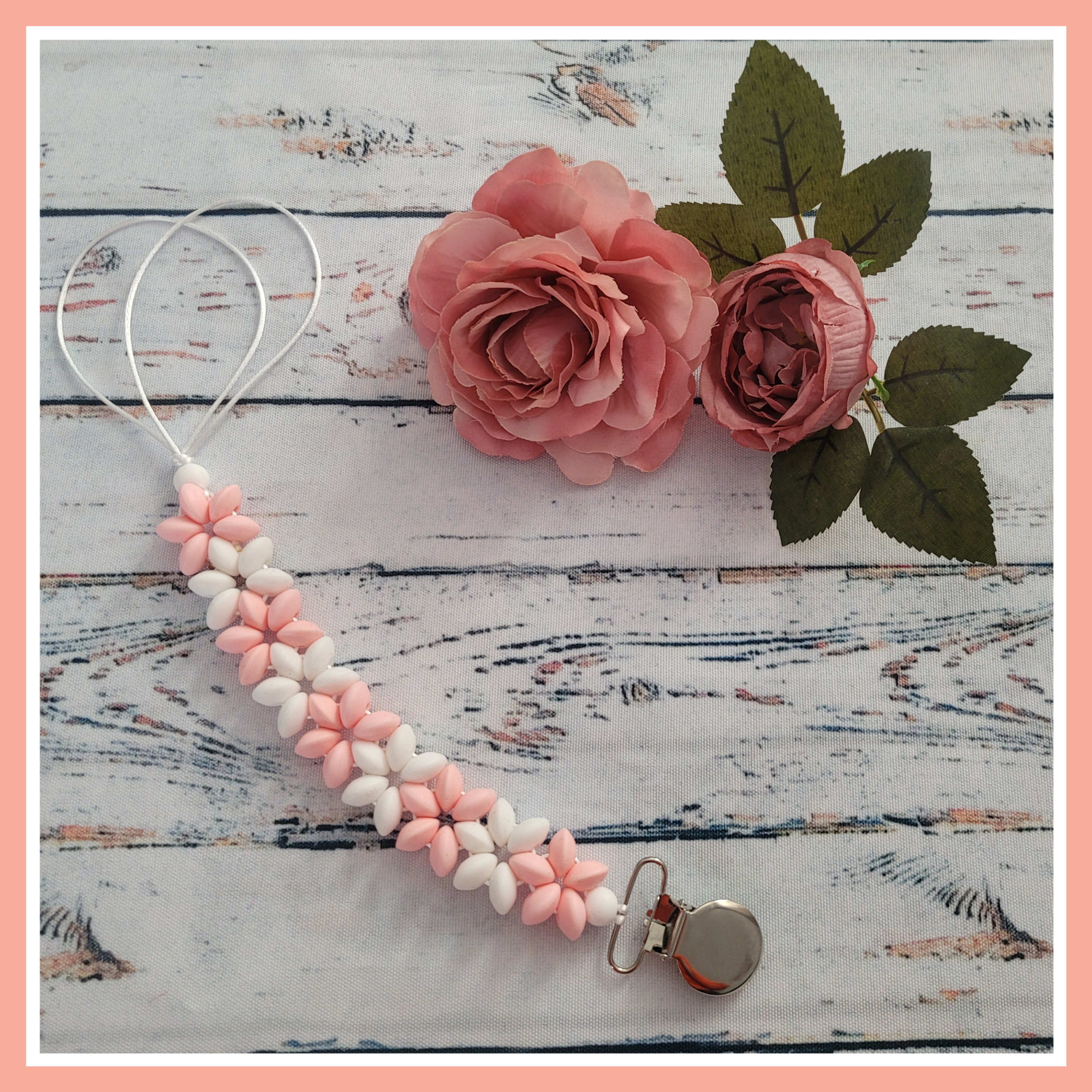 Zawieszka do smoczka stanowi pomoc dla każdego Rodzica, dzięki niej pożegnasz się z problemem spadającego smoczka, bądź jego utraty , ma bardzo łatwe mocowanie, a klips można jedną ręką przypiąć do ubranka dziecka.